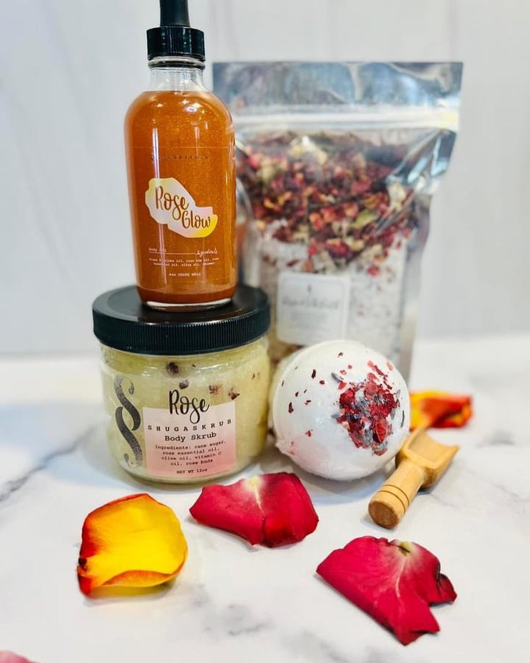 Rose Bundle | Rose Milk Bath Salts, Rose Body Skrub & Rose Infused Body Oil
